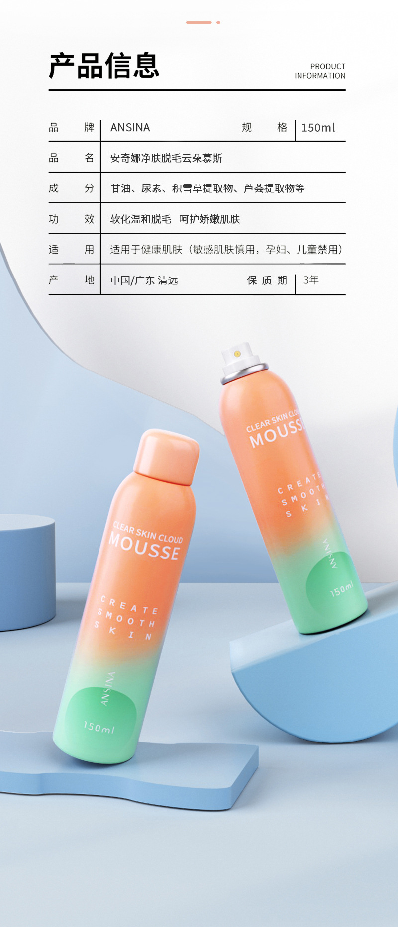 商品名称:云朵净肤脱毛慕斯脱毛腋下四肢通用温和脱毛泡沫