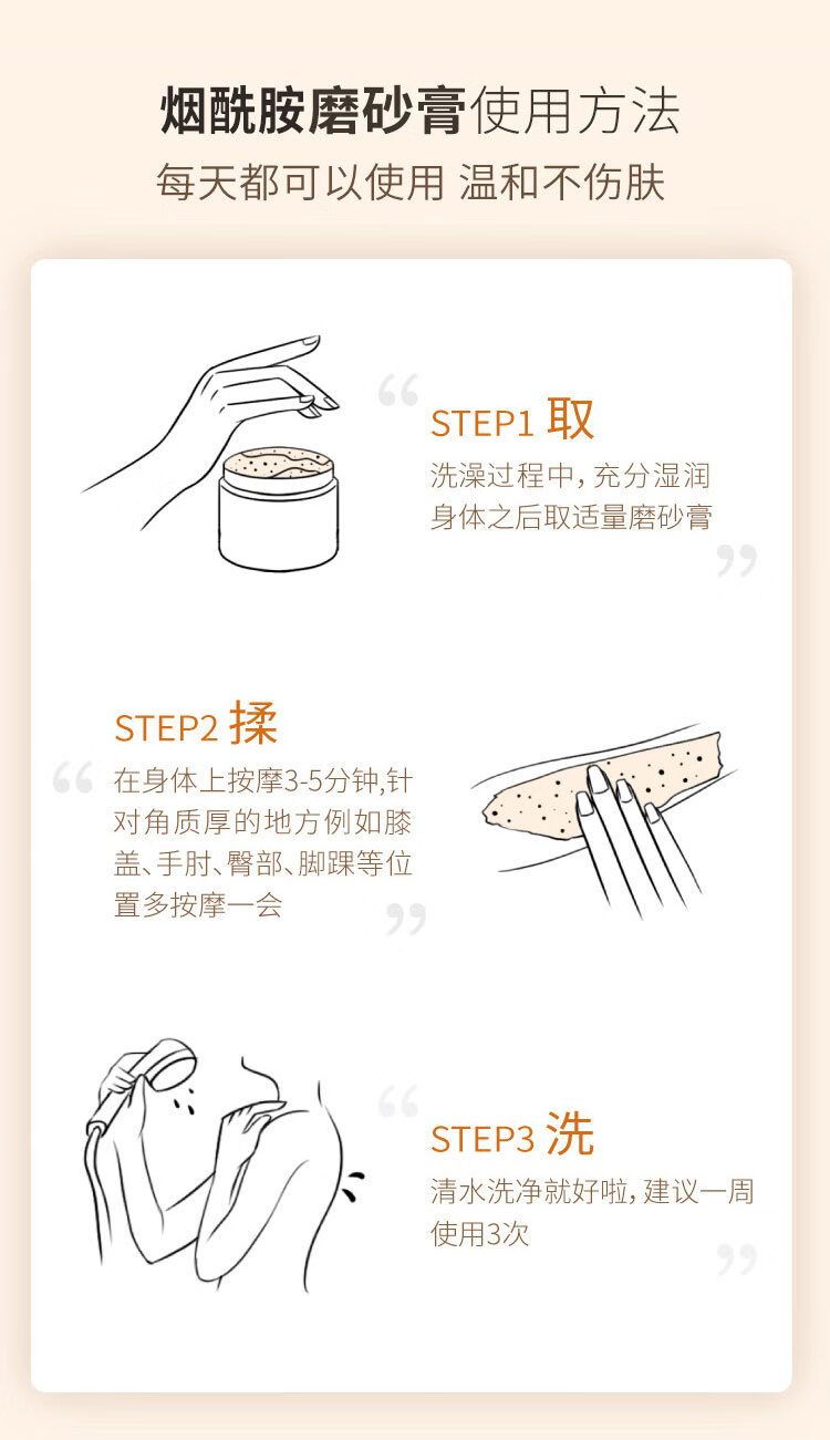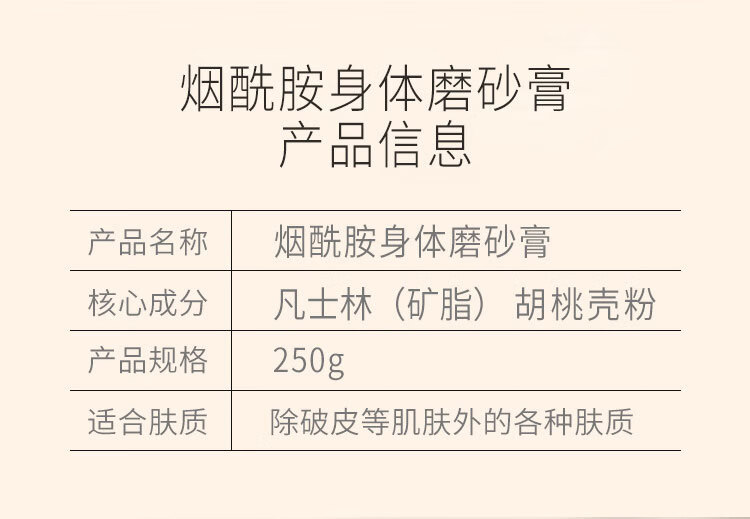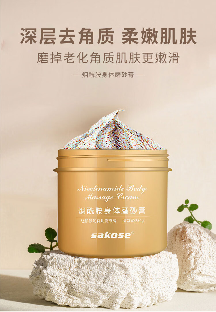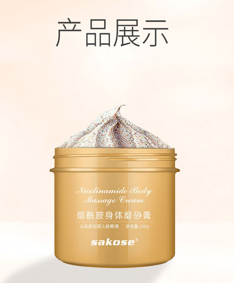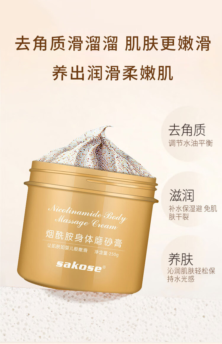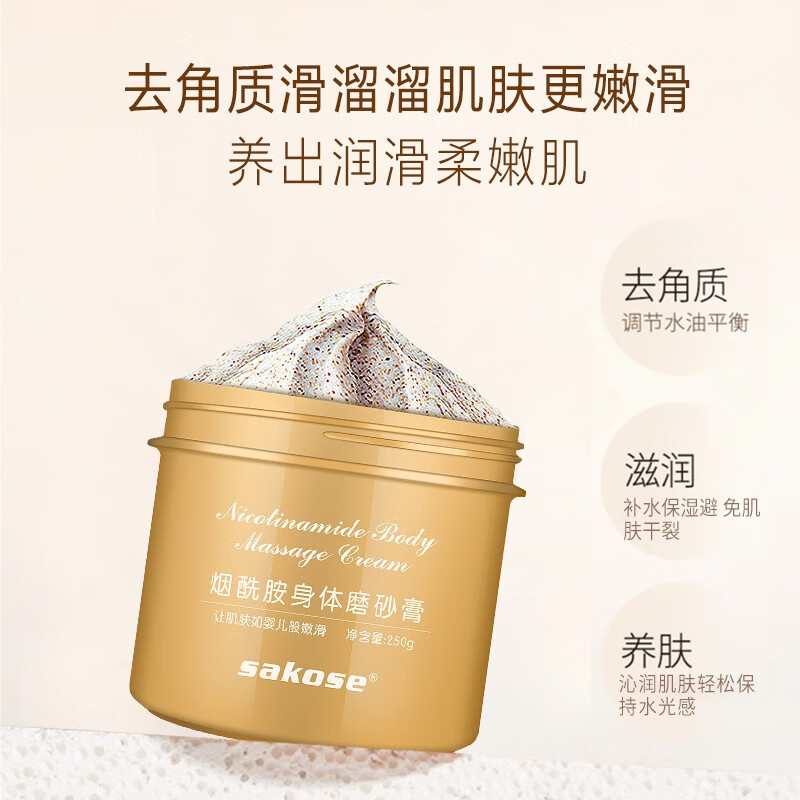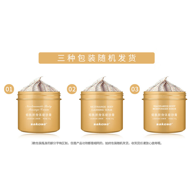 商品名称:sakose凡士林烟酰胺身体磨砂膏250g去角质搓泥宝全身深层清洁浴盐沐浴露