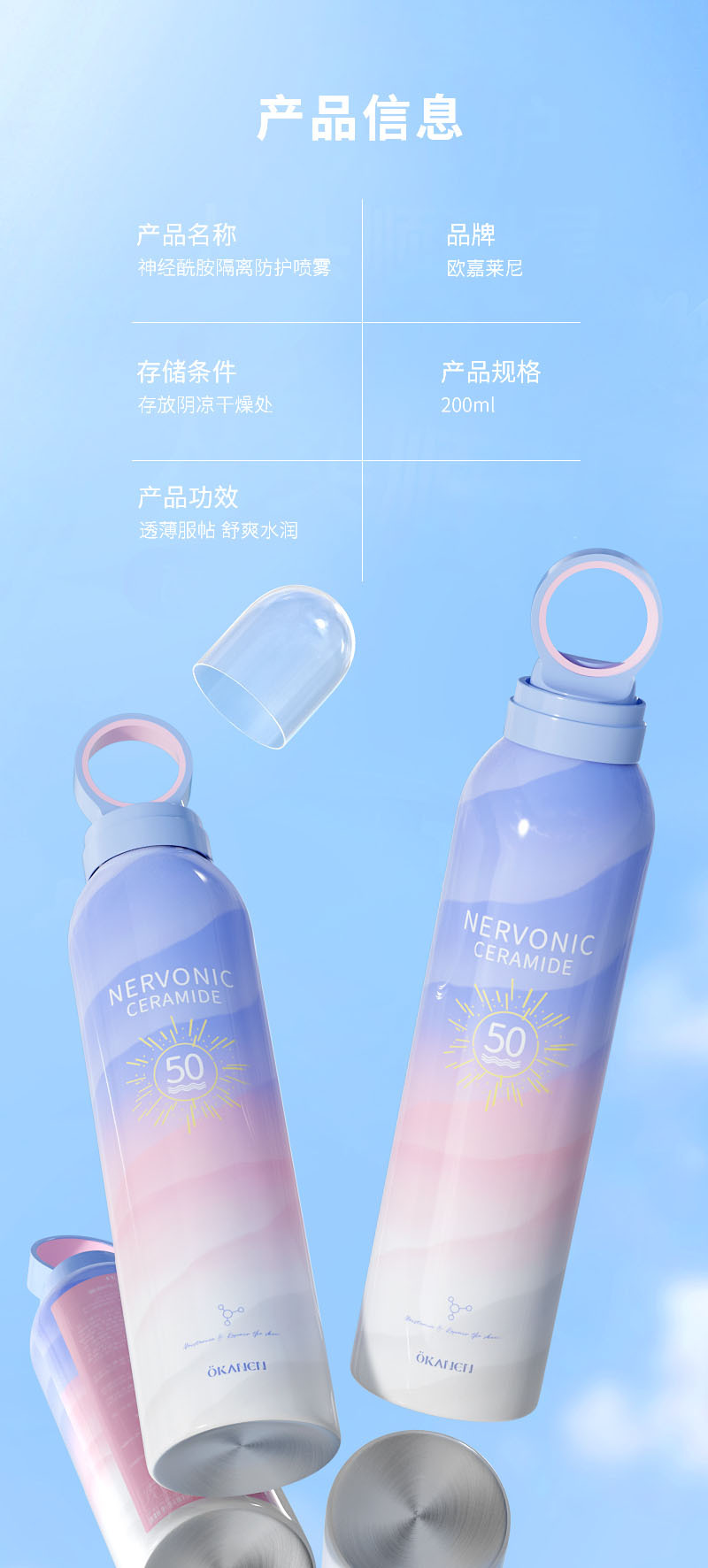 商品名称:欧嘉莱尼隔离防护喷雾清爽不油腻保湿妆前二合一隔离喷雾