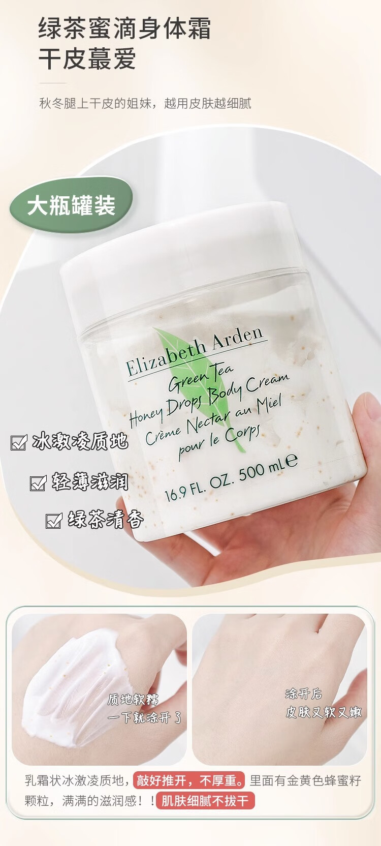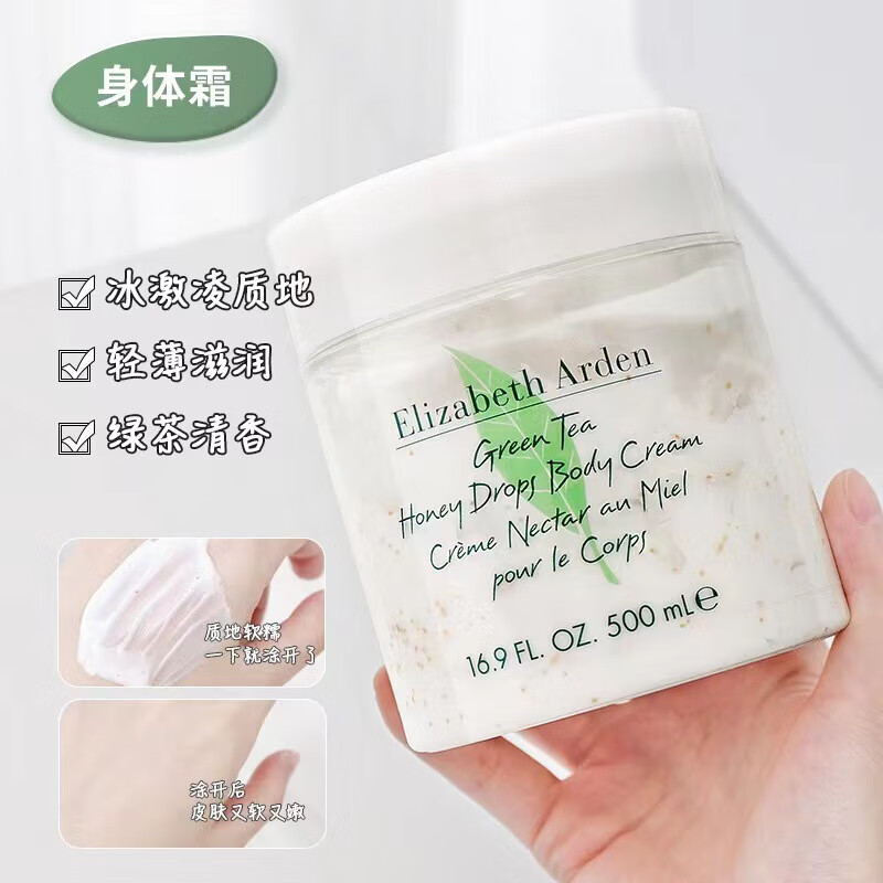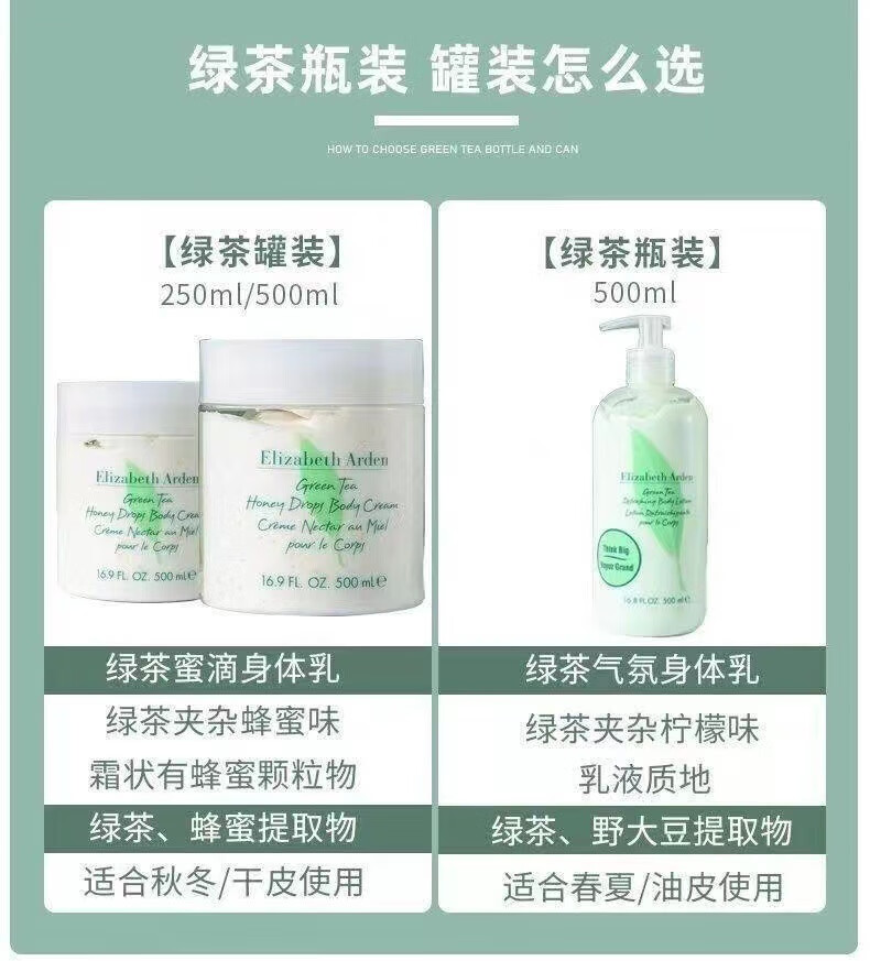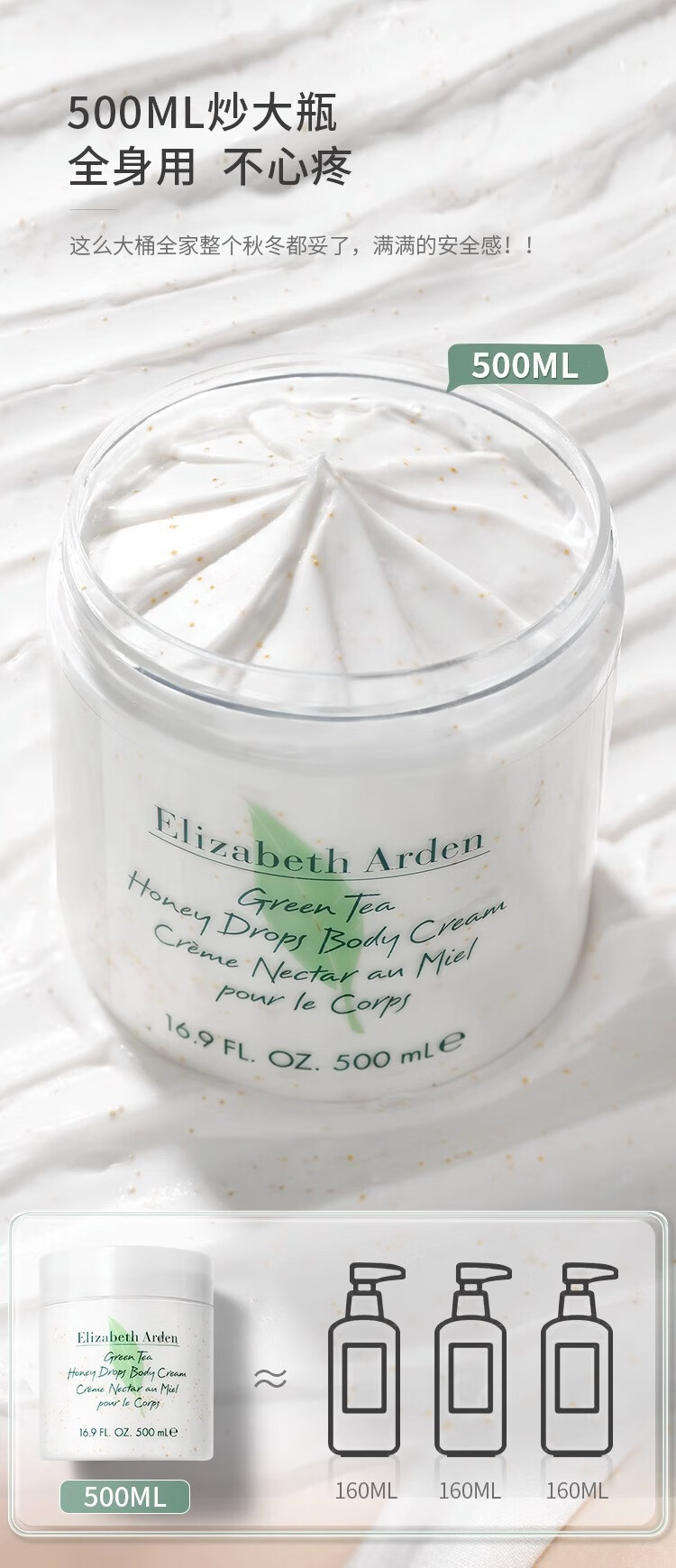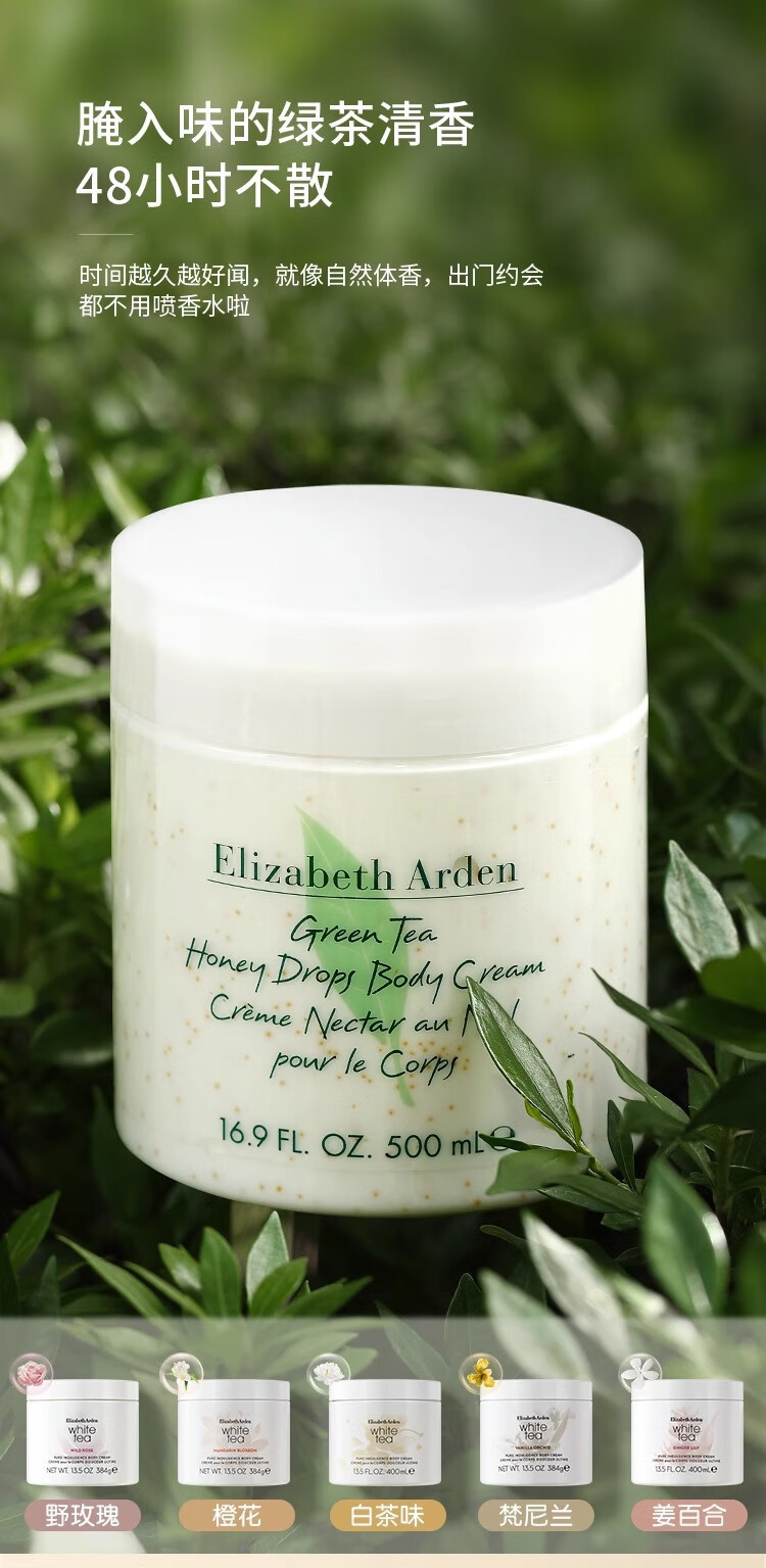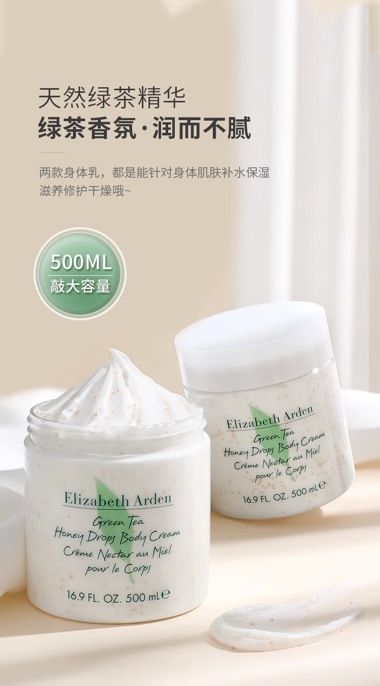 伊丽莎白雅顿(Elizabeth Arden)原装进口 绿茶身体乳 白茶野玫瑰橙花滋润保湿润肤乳液清爽不油腻 绿茶蜜滴身体乳500ml【罐装】