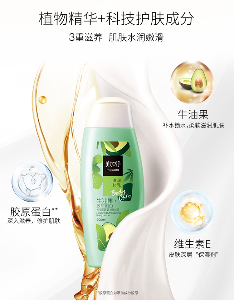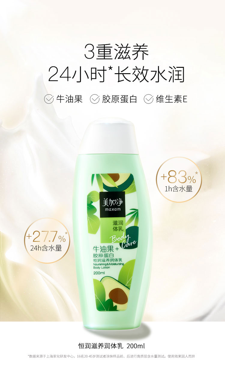 商品名称:美加净恒润滋养润体乳滋润浴后保湿 植物精华 3重滋养 润肤身体乳200ml