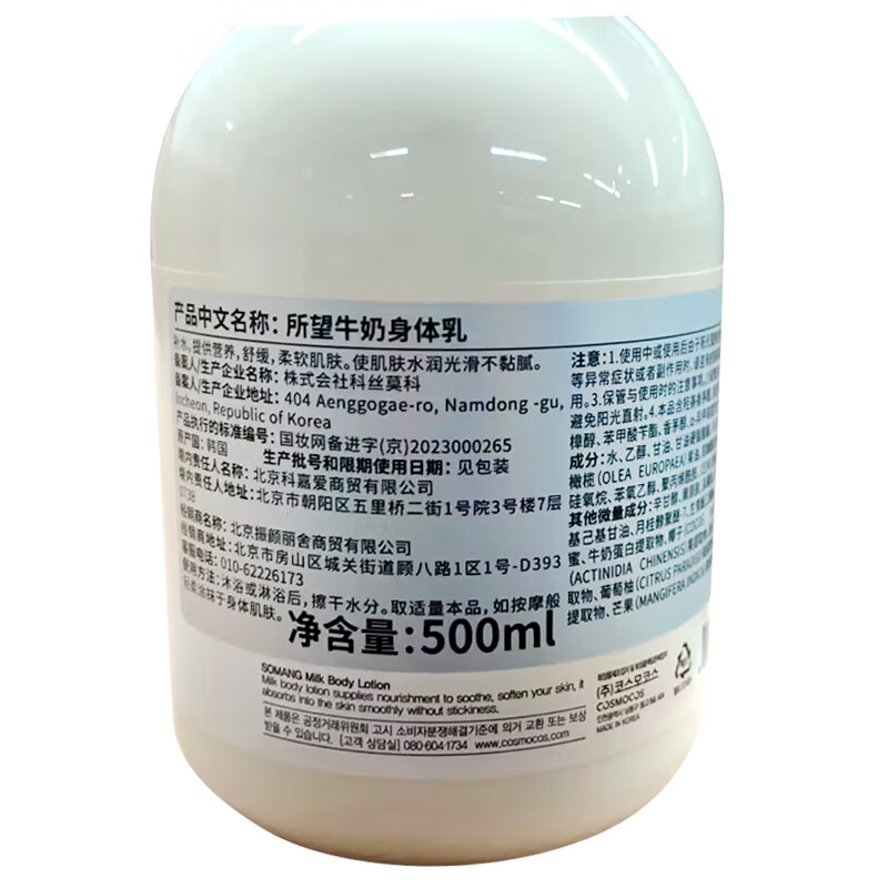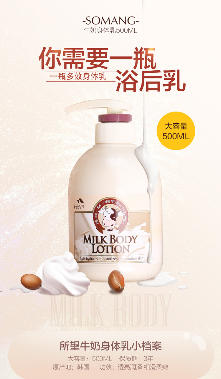 商品名称:所望SOMANG牛奶身体乳500ml (补水保湿润体乳液 韩国进口)