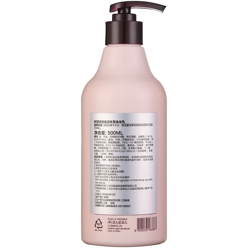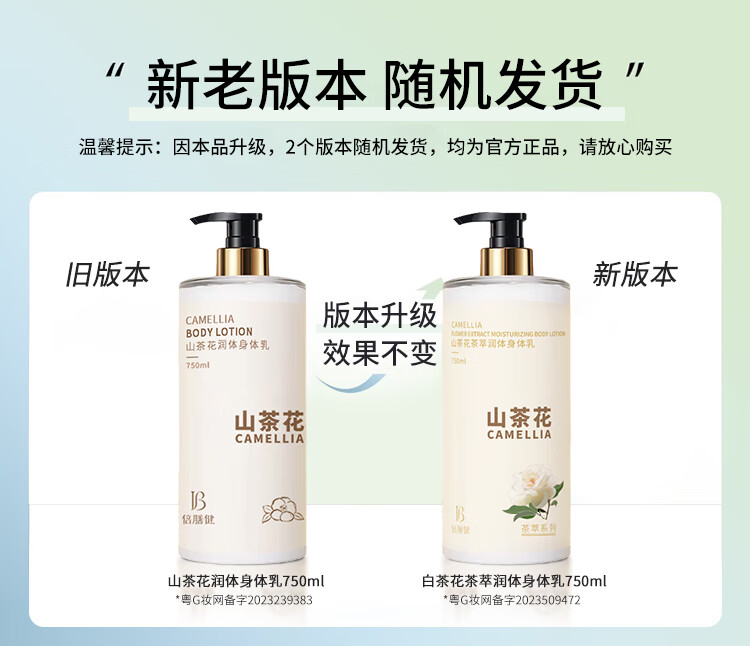 商品名称:倍膳健山茶花身体乳浴后乳烟酰胺润肤露霜补水保湿留香男女士750ml