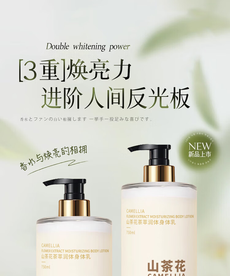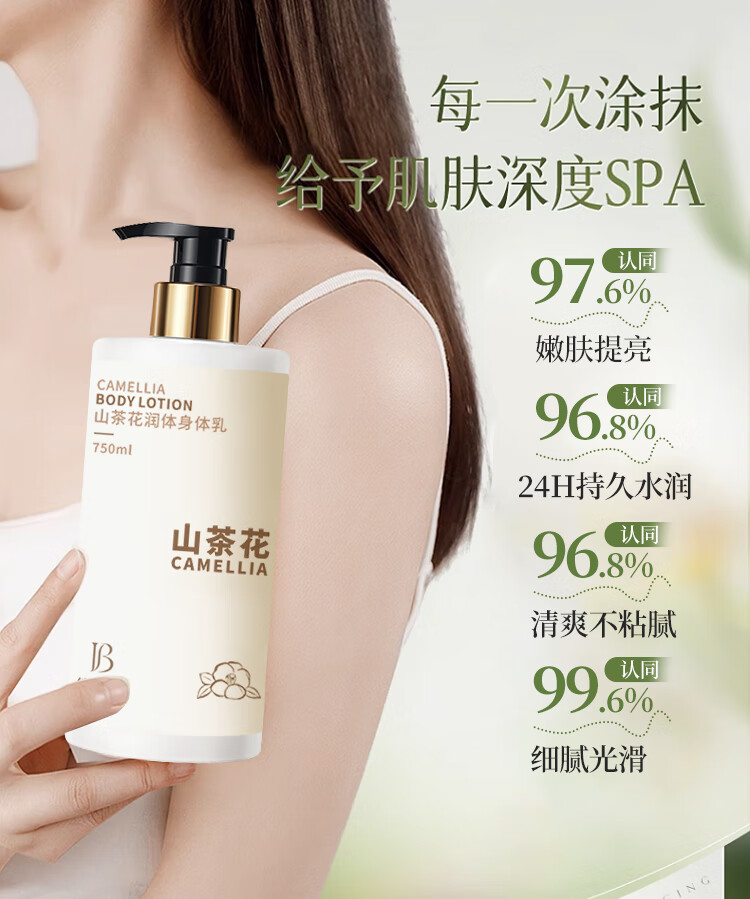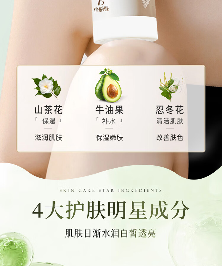 倍膳健山茶花身体乳浴后乳烟酰胺润肤露霜补水保湿留香男女士750ml
