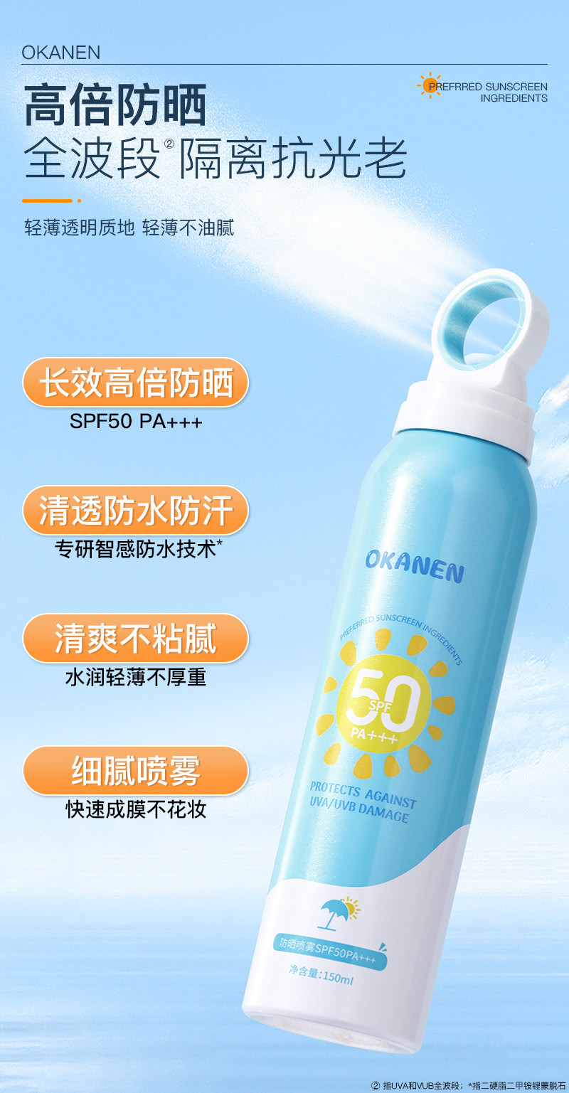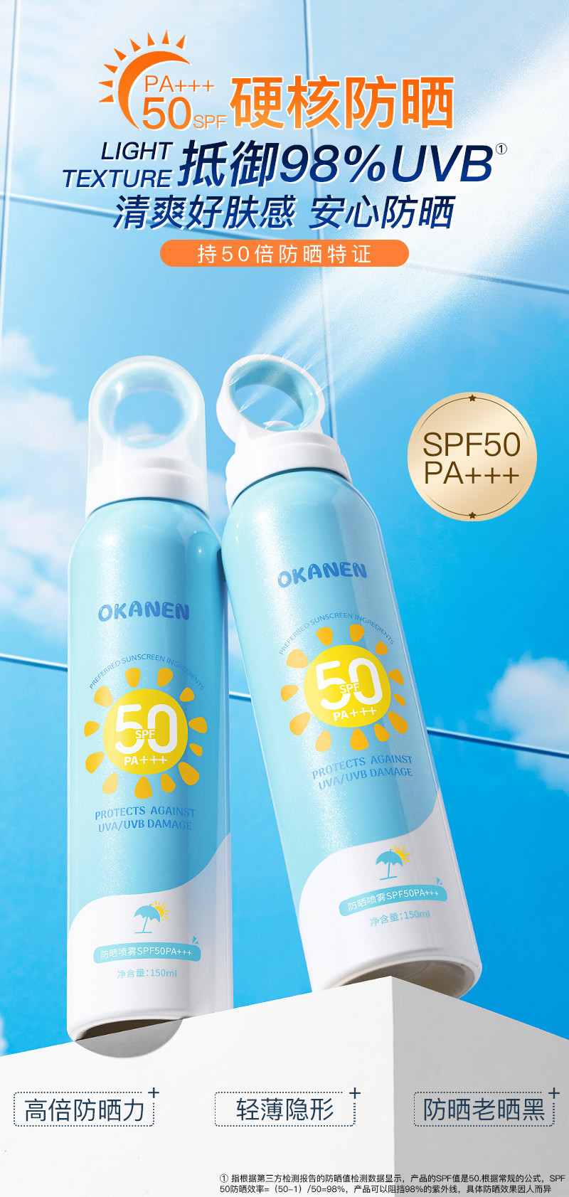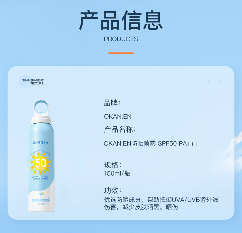 商品名称:防晒喷雾夏季全身防紫外线隔离清爽保湿不粘腻防晒喷雾