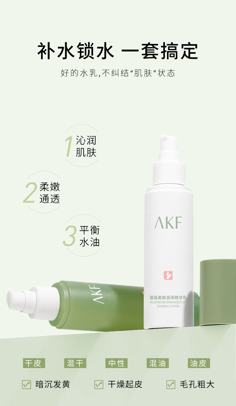 AKF菌菇水乳套装正品补水护肤品学生党平价清仓甩货 菌菇精华水+精华乳