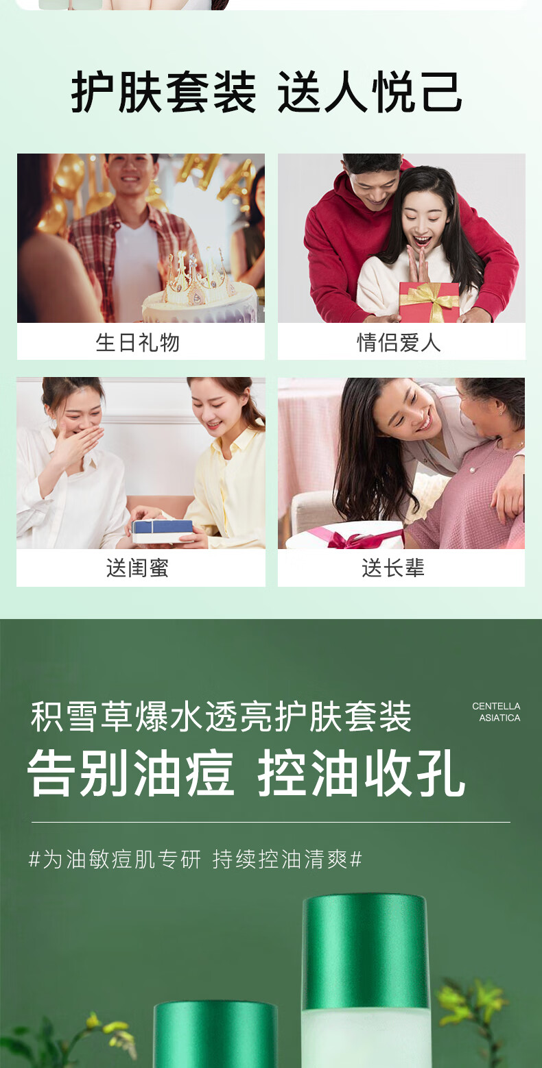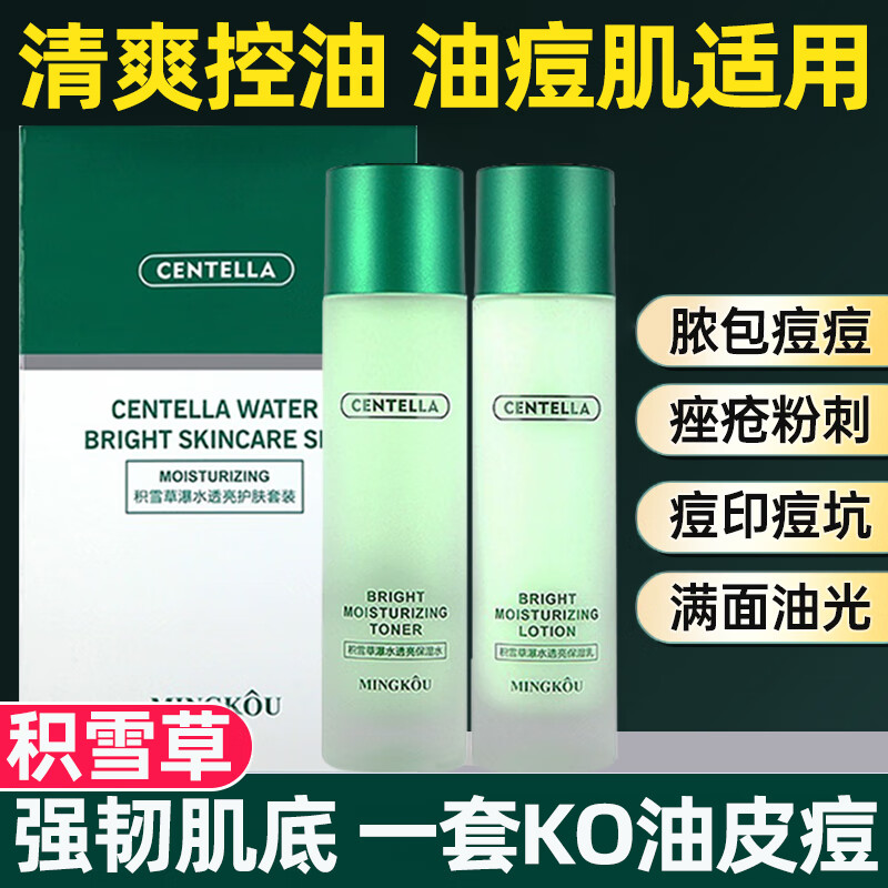MINGKOU积雪草敏感肌水乳套装保湿补水控油学生秋冬清爽混油皮男女士1套