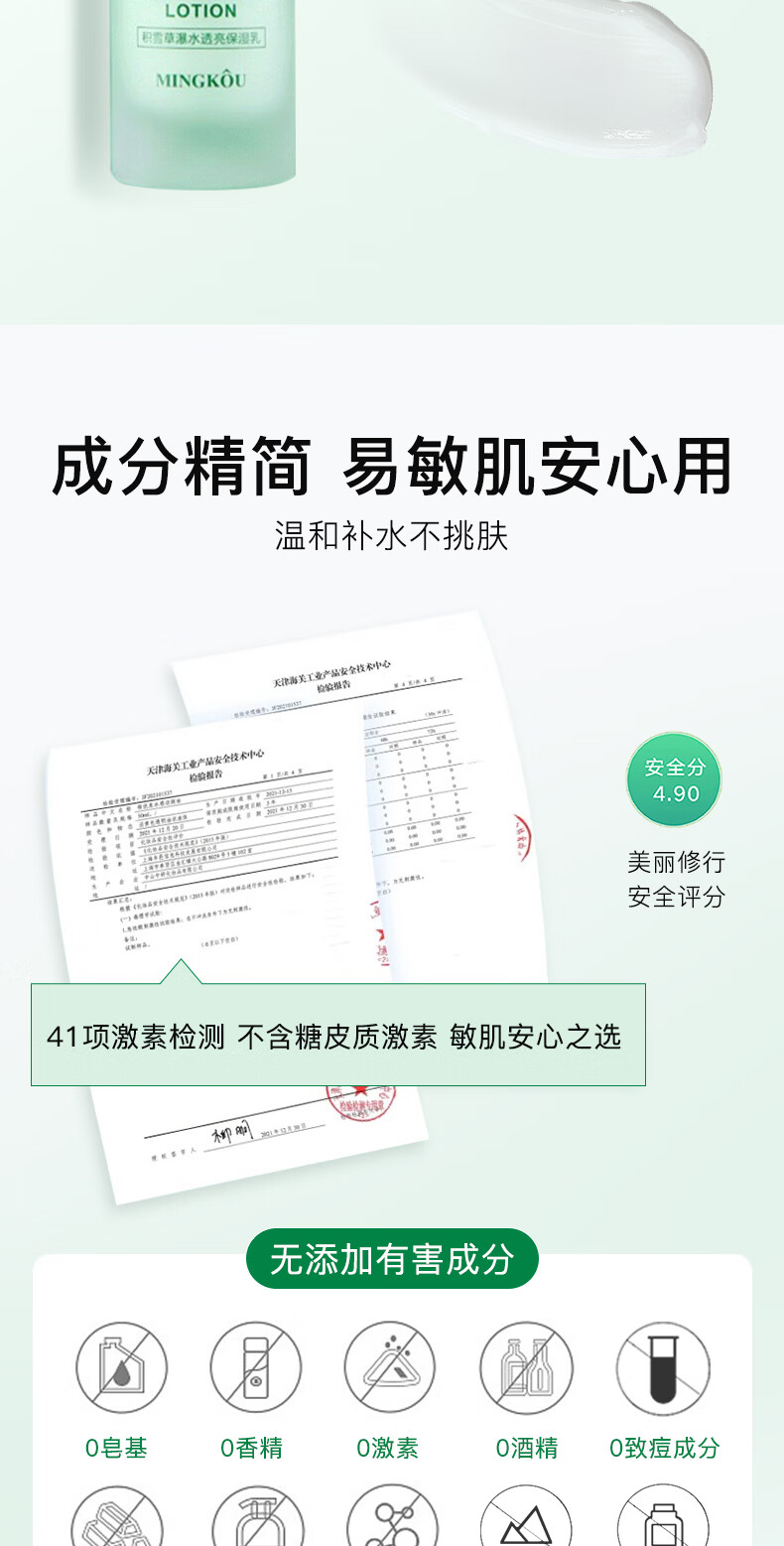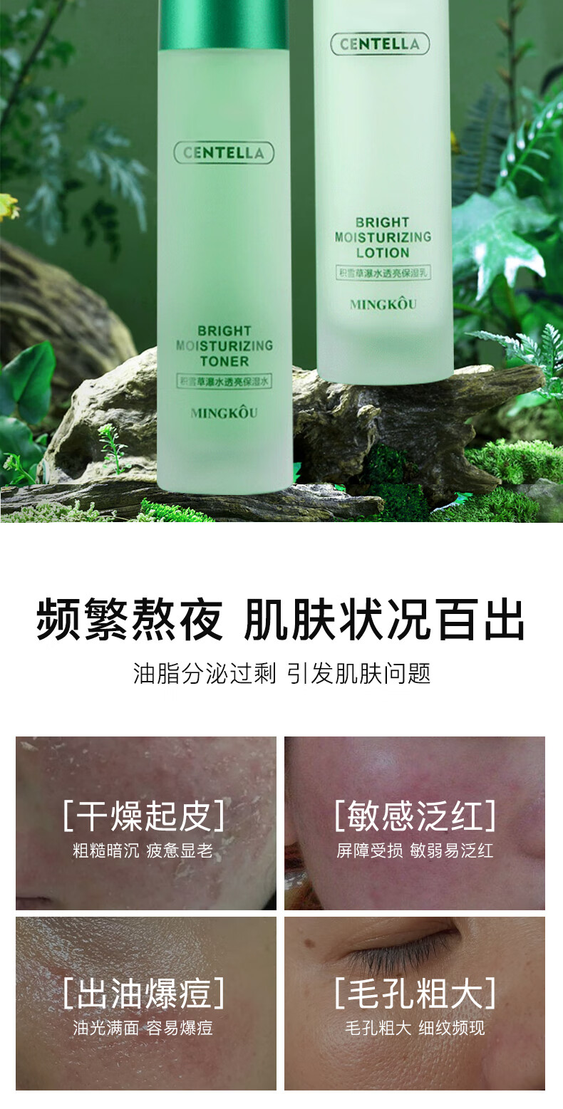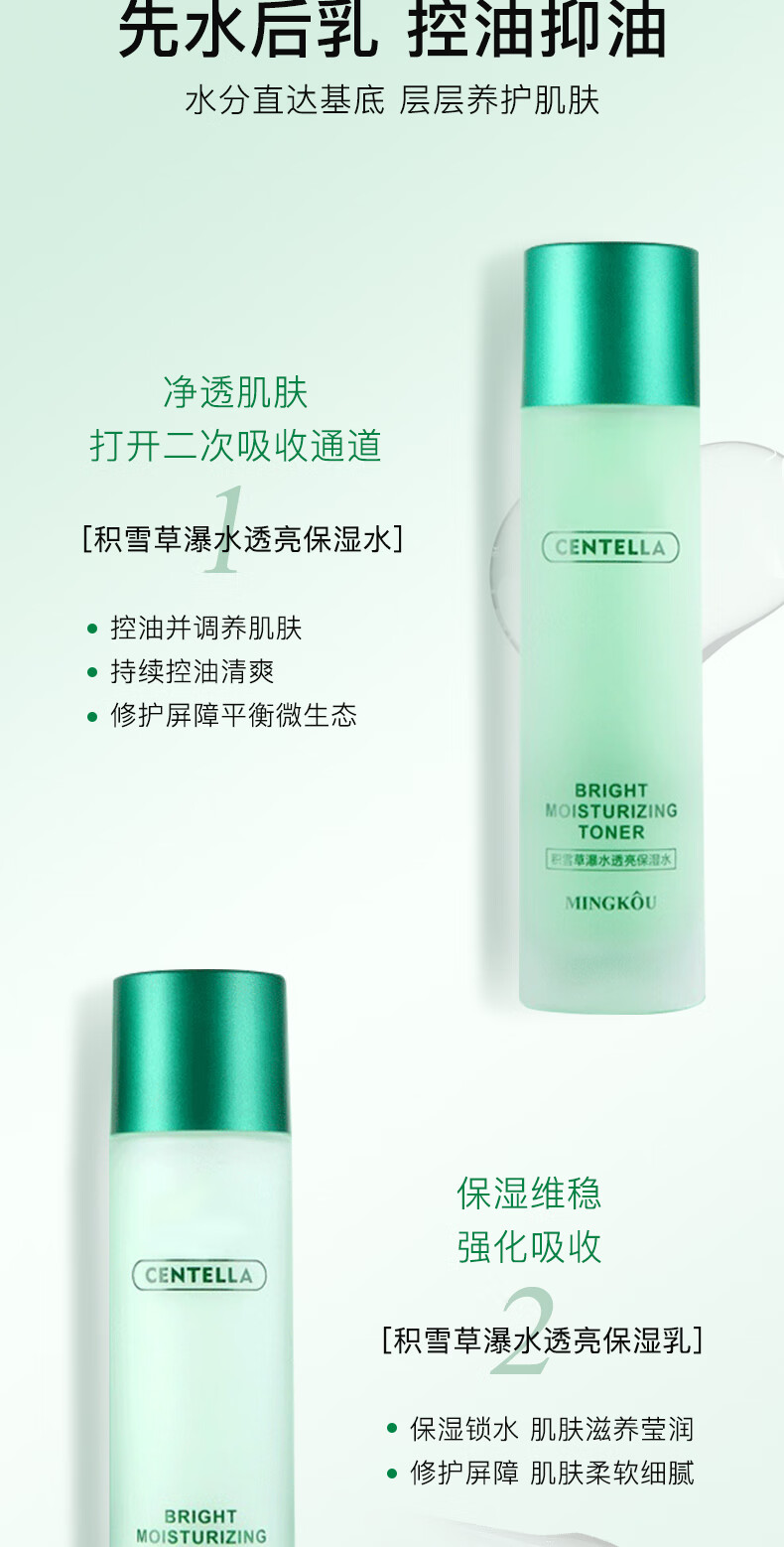 商品名称:MINGKOU积雪草敏感肌水乳套装保湿补水控油学生秋冬清爽混油皮男女士1套