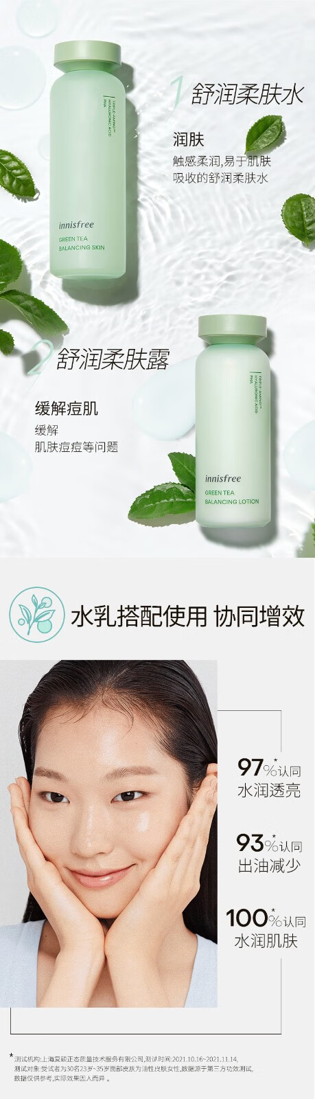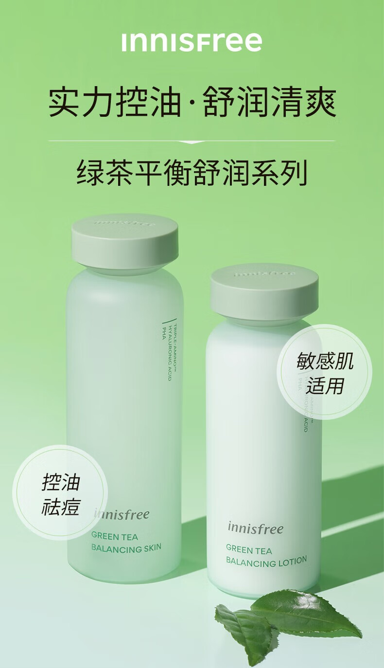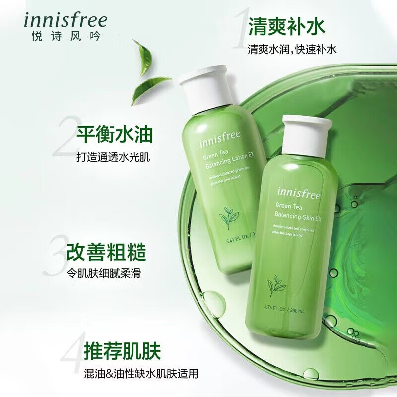 悦诗风吟绿茶水乳套装平衡控油舒缓油皮清爽补水保湿油痘肌学生党护肤品女 绿茶水乳,发新包装