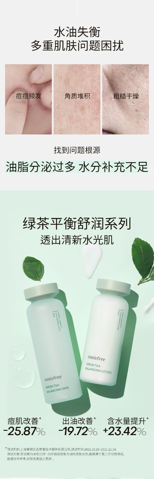 商品名称:悦诗风吟绿茶水乳套装平衡控油舒缓油皮清爽补水保湿油痘肌学生党护肤品女 绿茶水乳,发新包装