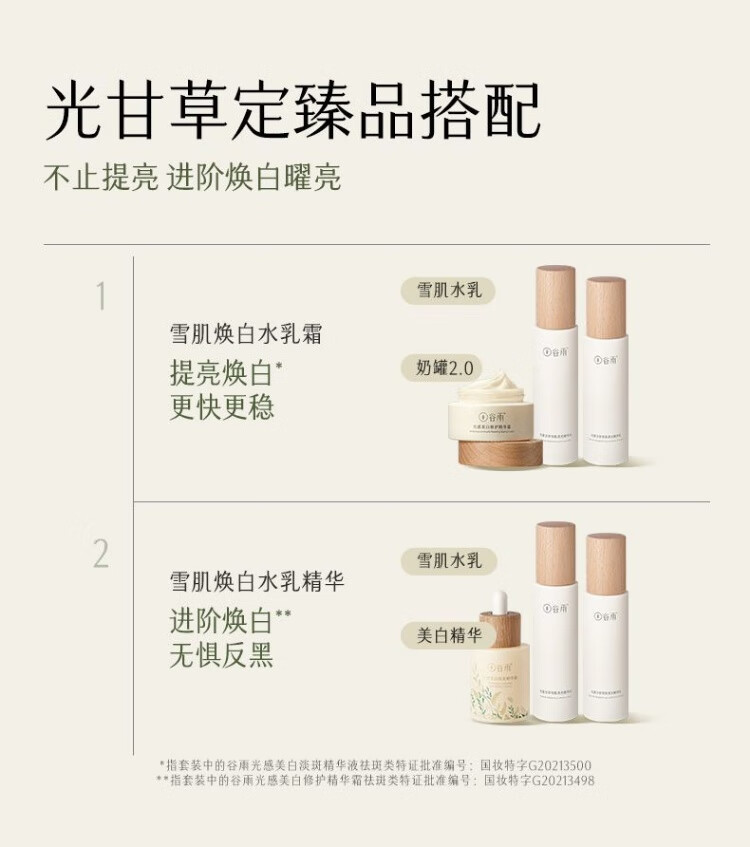 商品名称:光果甘草雪肌水乳套装美白霜提亮补水保湿化妆品护肤品黄皮 谷雨光果甘草雪肌水120ml