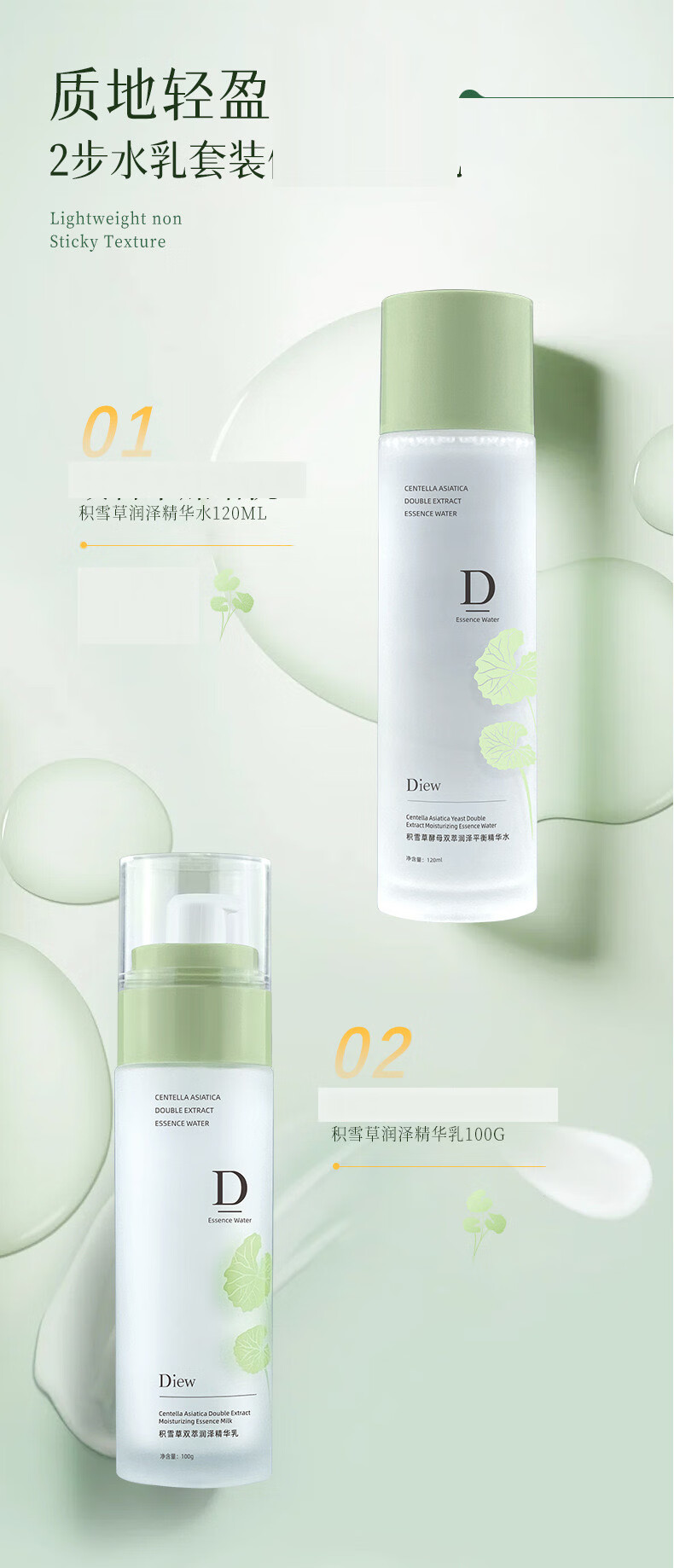 DIEW青少年护肤品积雪草水乳套装青春期初高中学生女生12-18岁学生党 精华水120ml+精华乳100g