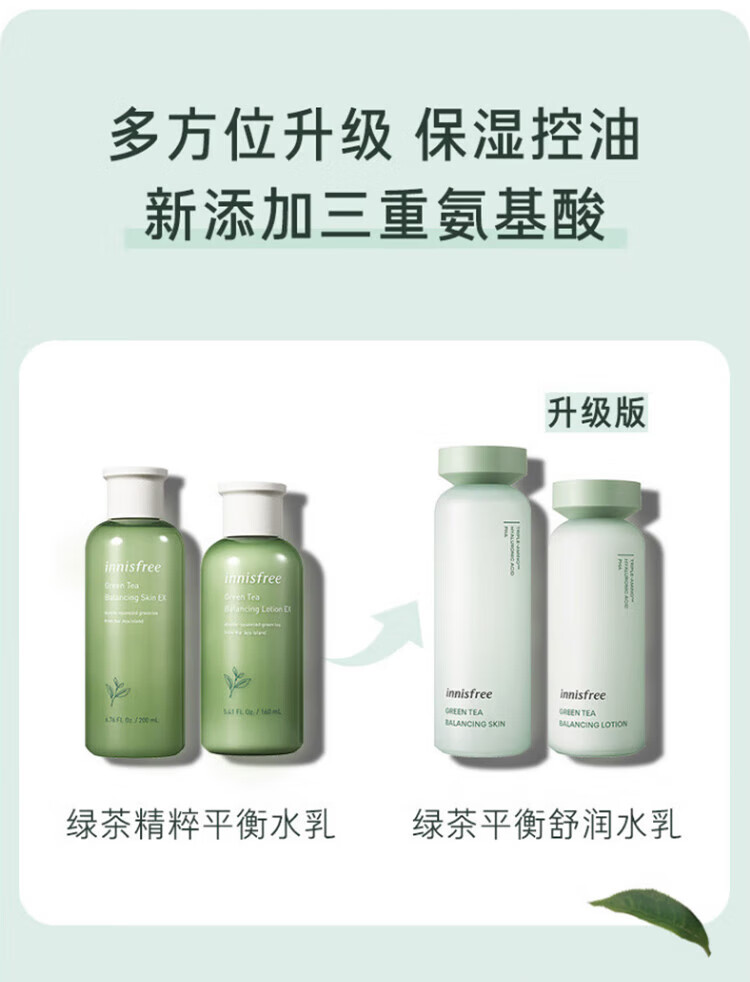 悦诗风吟水乳套装礼盒绿茶平衡舒润补水保湿清爽控油洗面奶学生党护肤品女 绿茶平衡洁面水乳组套(组合装)