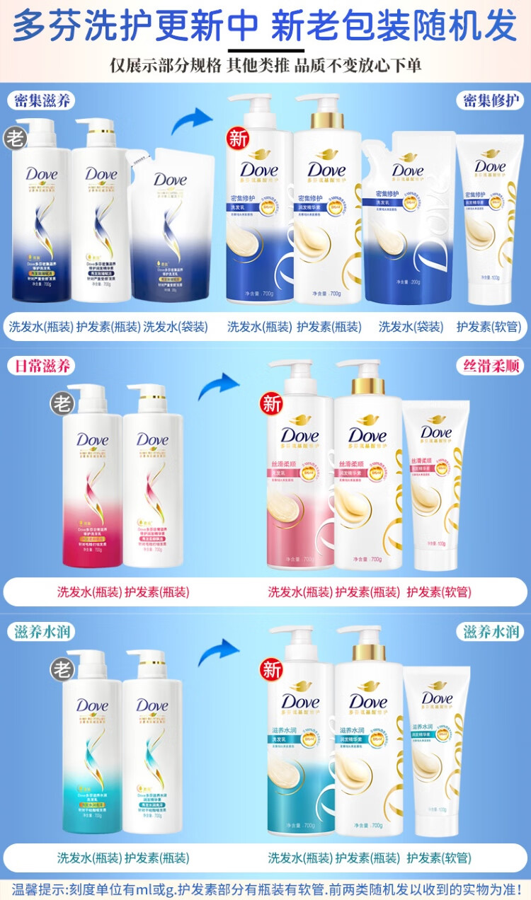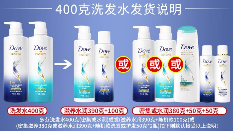 商品名称:多芬(Dove)洗发水护发素套装 洗发水400g*2瓶+精华素380g*2瓶