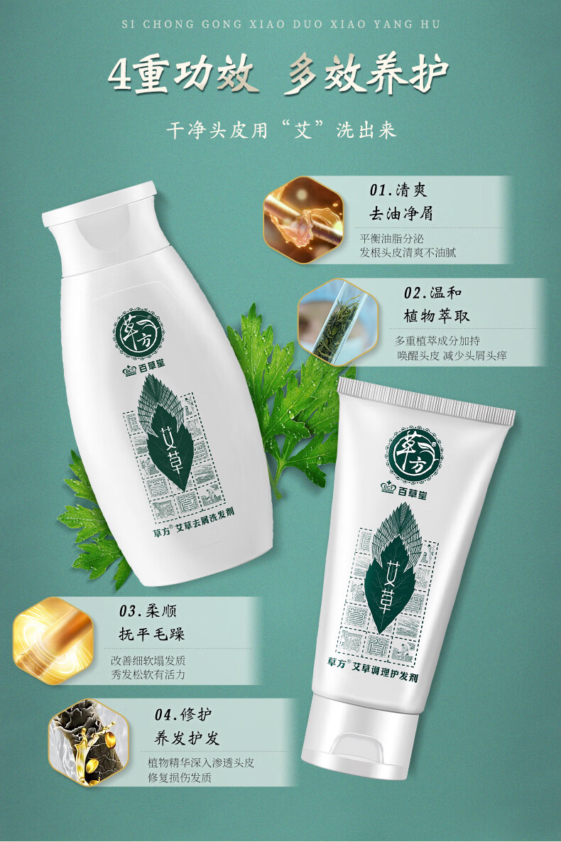 商品名称:草方百草堂艾草精华浓缩艾草去屑止痒控油清爽洗发水柔顺护发改善毛躁 【橘色膏体】艾草去屑洗发*1支