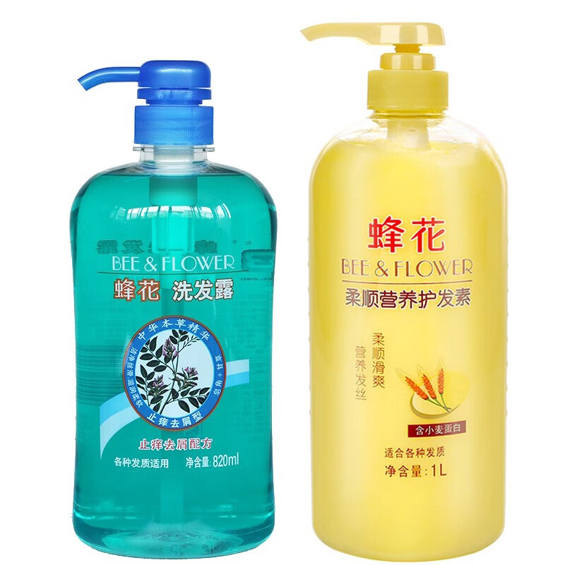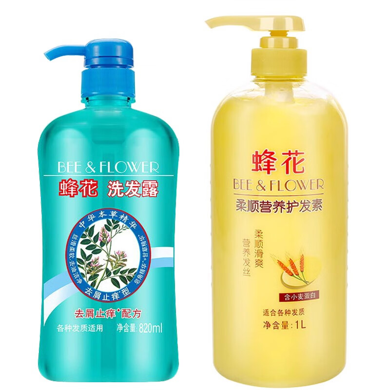 商品名称:蜂花洗发露820ml止痒去屑洗发水去头屑防止毛躁顺滑洗发乳男女用 蜂花洗发露+小麦蛋白护发素