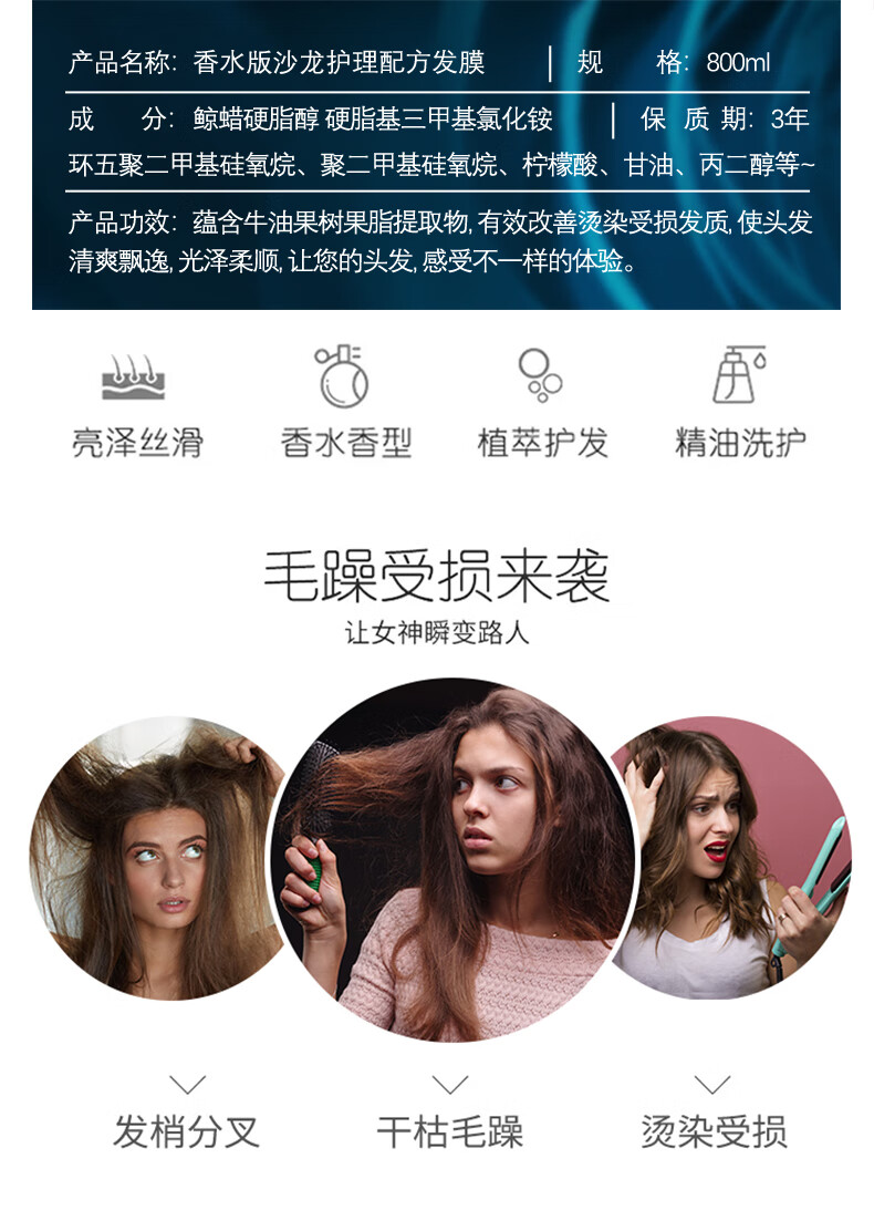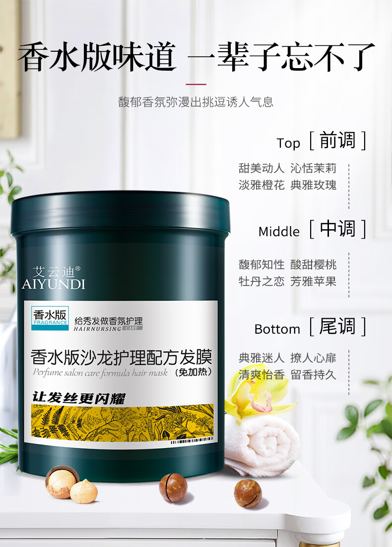 商品名称:艾云迪【发廊级护理】发膜干枯水疗顺滑免蒸护发素倒膜改善毛躁烫染受损 800ML护发素+800ML洗发水