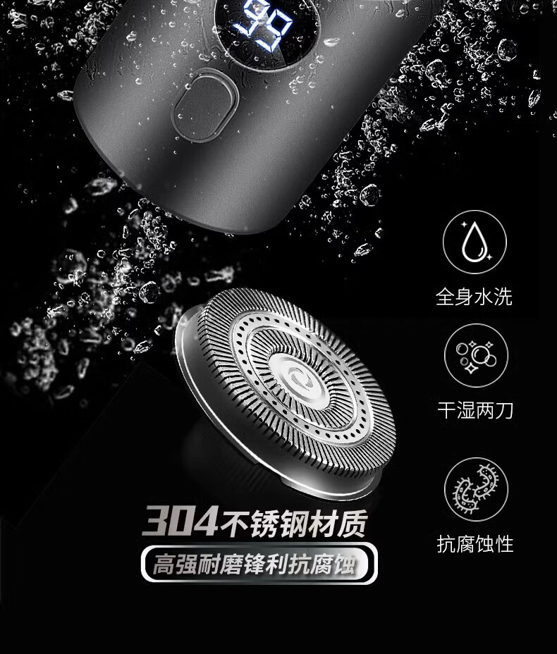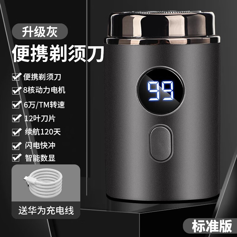 商品名称:德国品质电动剃须刀男士旅行便携式迷你小钢炮刨刮胡刀数显送礼 升级款星空灰+1套备用刀头 普通装