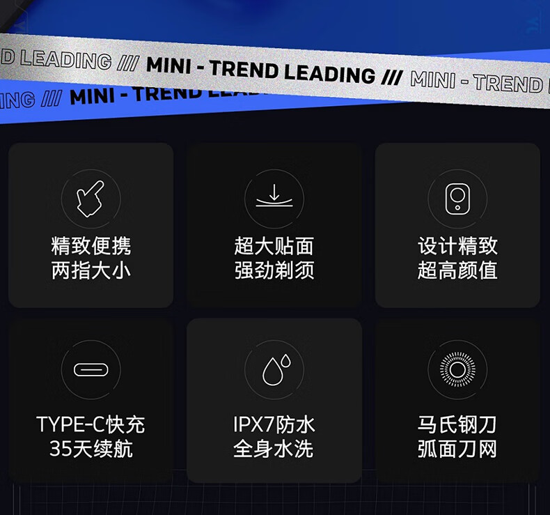 商品名称:mini剃须刀男士电动刮胡刀便携充电式胡须刀全身水洗干湿双剃快充 元石科技银