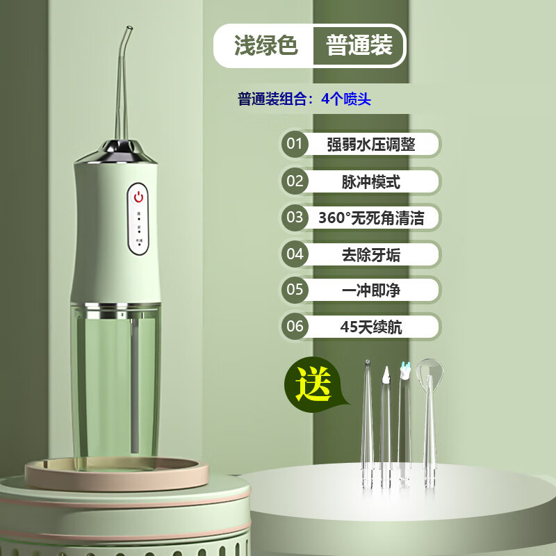 商品名称:科仕顿KESHIDUN冲牙器便携式家用电动洗牙器口腔清洁水牙线冲洗牙齿清洁器除牙垢正畸专用手持脉冲洁牙器 升级充电款碧绿+4喷嘴丨强动力丨全身防水220ml