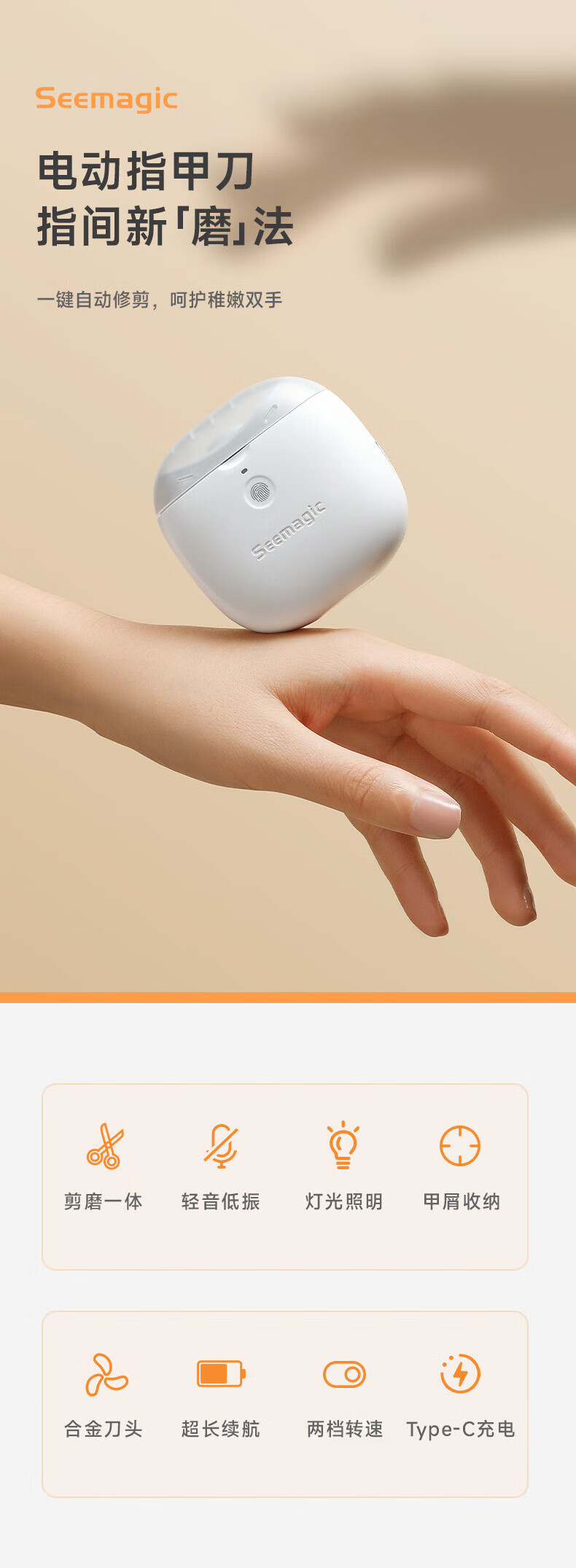 商品名称:Seemagic醒刻电动指甲刀 全自动指甲刀修剪打磨器 安全可视 成年人老人家用礼物